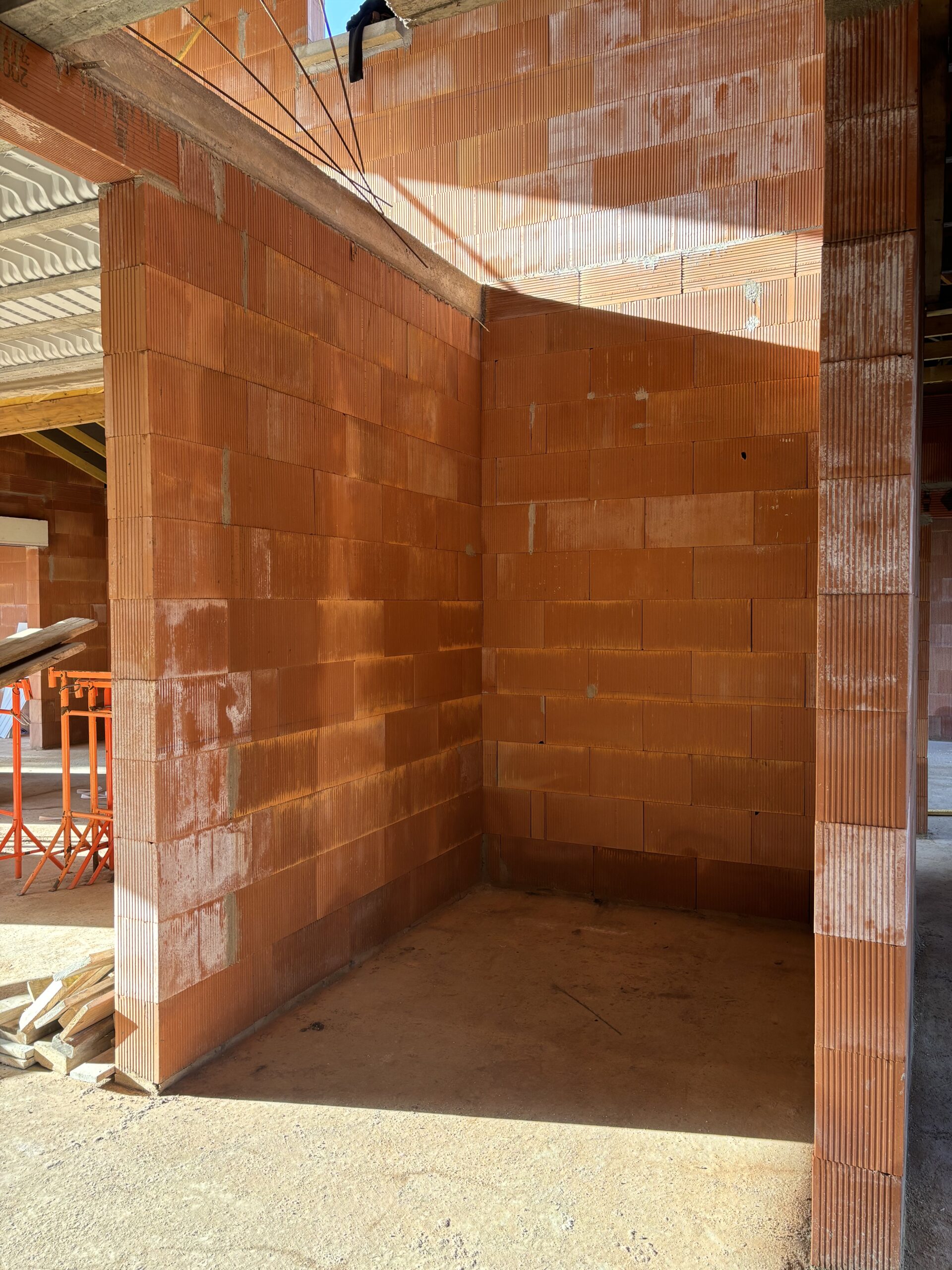 Escalier moderne dans une maison neuve, d’inspiration brutaliste.